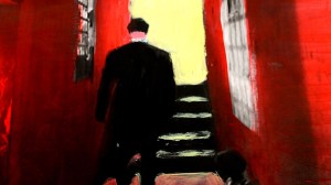 Il colore, spesso il rosso, accentua il senso di chiusura e oppressione che soffoca, immerge le figure in un’atmosfera filtrata di illusione.